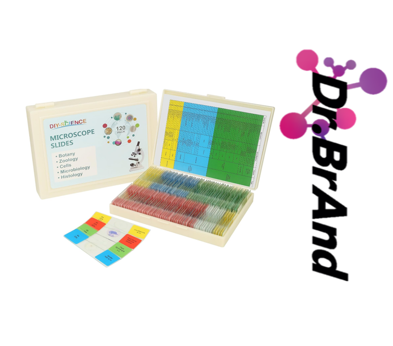 Micropreparados para Microscopio 120 Laminillas en Vidrio de muestras como biología, botánica, zoología, histología, microbiología, células, para enseñar, estudiar varios especímenes biológicos.
